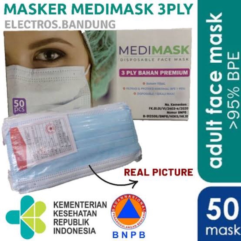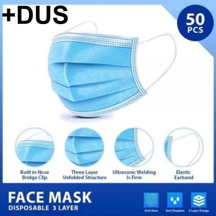 MASKER Biru 50 PCS NON MEDIS Tebal 3 Ply Masker Disposable Non-Medis Biru