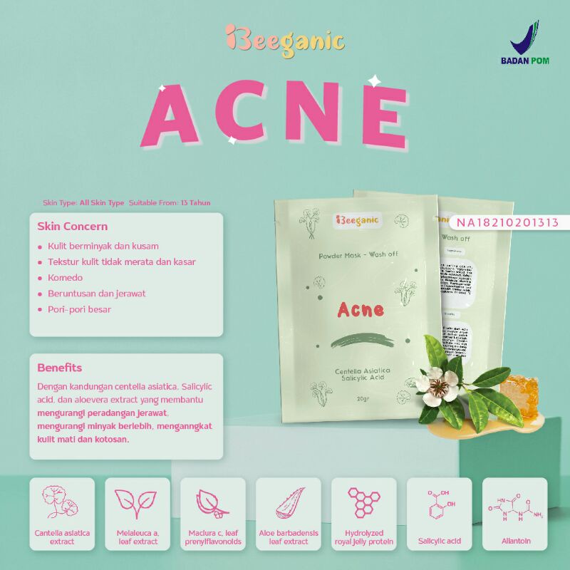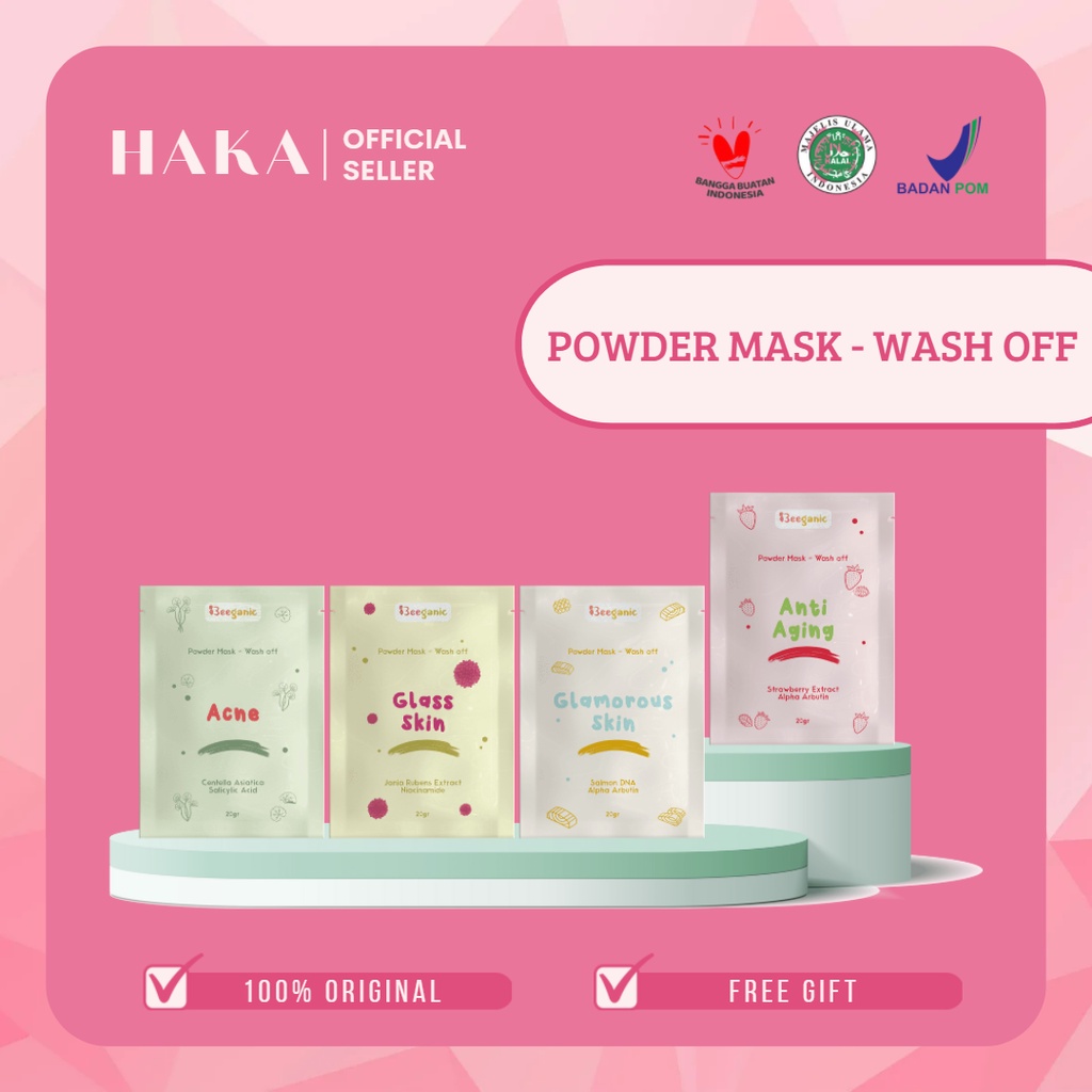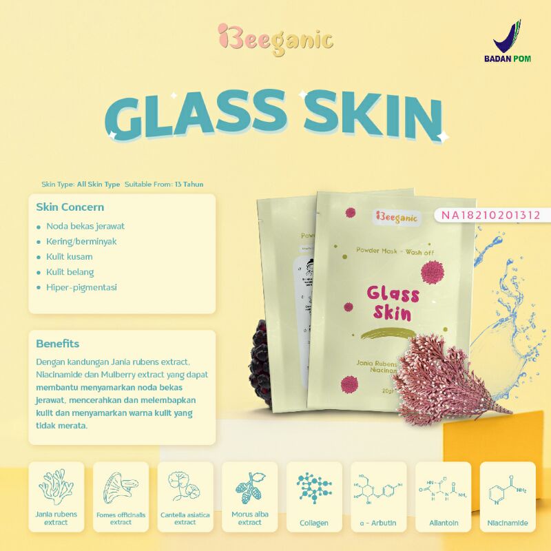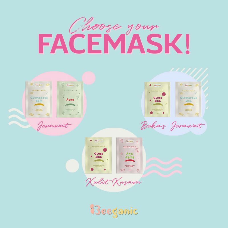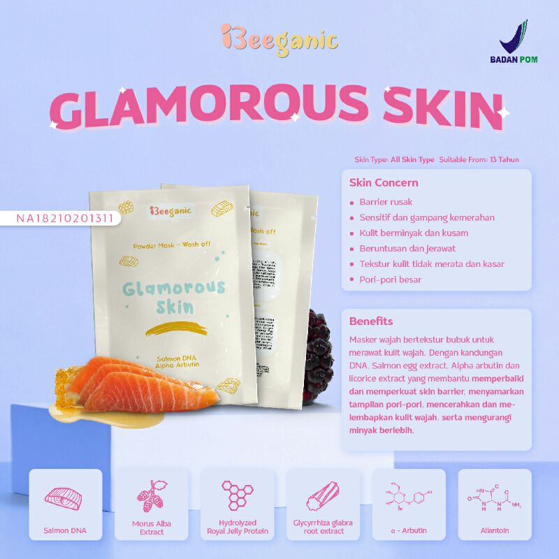 MASKER CLAY POWDER MASK ORGANIK PERAWATAN KECANTIKAN PEMUTIH PELEMBAB MELEMBABKAN PENCERAH WAJAH BEEGANIC WASH OFF MASK GLAMOROUS GLASS SKIN ACNE ANTI AGING DNA SALMON JERAWAT DAN BEKAS JERAWAT BRUNTUSAN GLOWING BUBUK 20GR BPOM