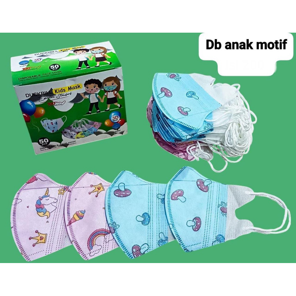 MASKER DUCKBILL ANAK BERMOTIF / MASKER ANAK DUCKBILL (50pcs)