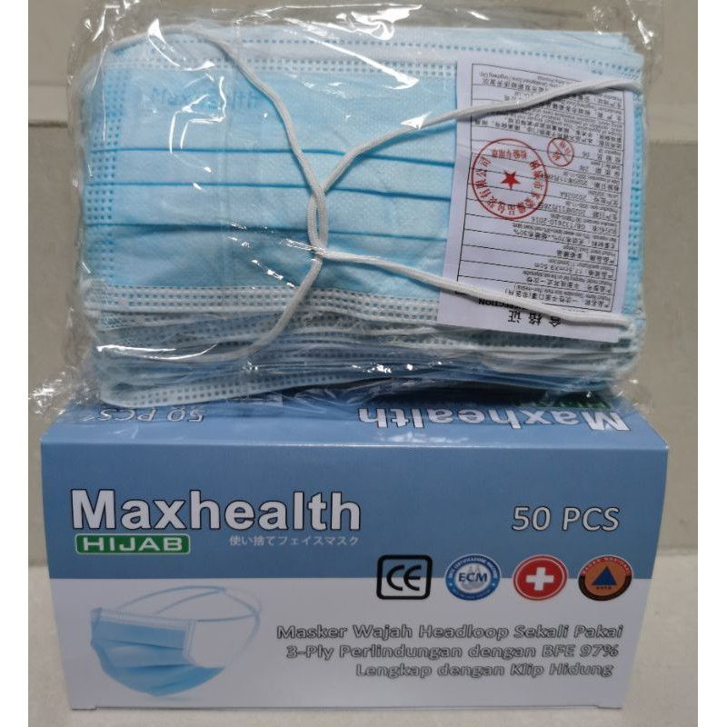 MASKER HIJAB MAX HEALTH / Hijab Hitam / Masker hijab 3 ply