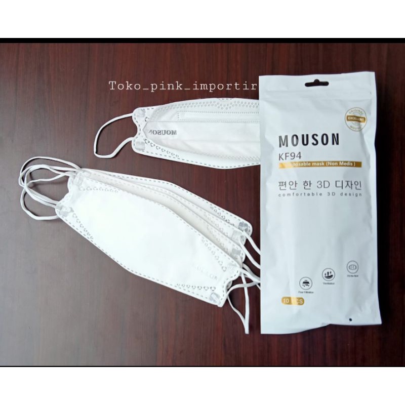 MASKER KF94 KF MOUSON PUTIH HITAM ABU 4PLY PACK ISI 10PCS | MASKER KF94 CAREION BLACK WHITE GREY | MASKER MOUSON KF94 WARNA 4PLY HITAM PUTIH ABU GREY EMBOSS | MASKER KOREA 4PLY PACK ISI 10 PACK ISI 10