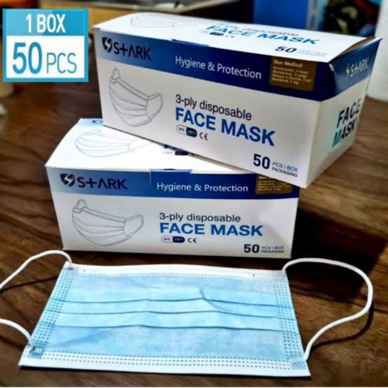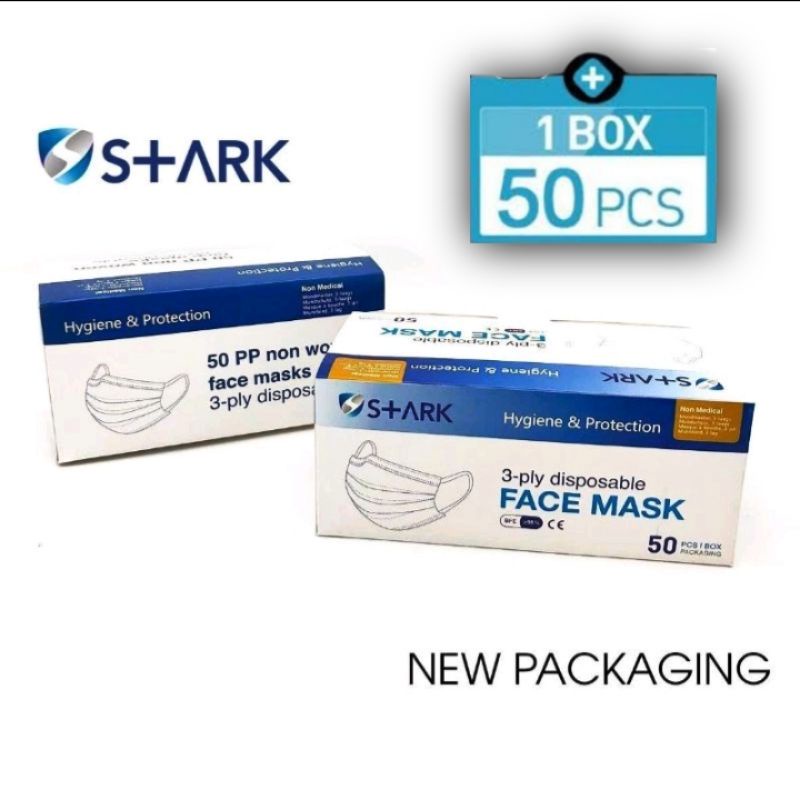 MASKER MEDIS / MASKER EARLOP 3PLY DISPOSABLE MERK S+ARK (ISI 50 PCS) PLUS BOX