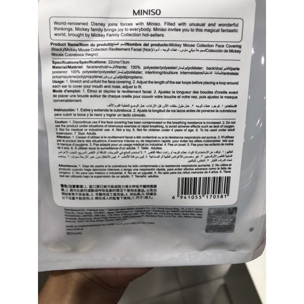 MASKER MINISO MOUTH MASK MICKEY MOUSE COLLECTION FACE COVERING