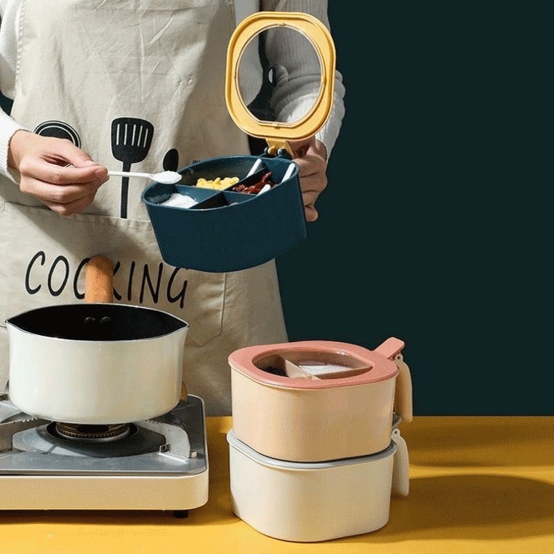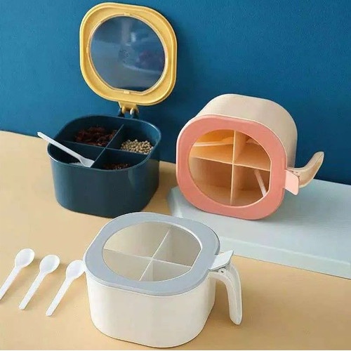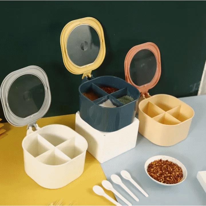 Masterhome Tempat Bumbu Kotak 4in1 | Kotak Bumbu 4 Sekat + Sendok | Tempat Bumbu Dapur 4 Sekat