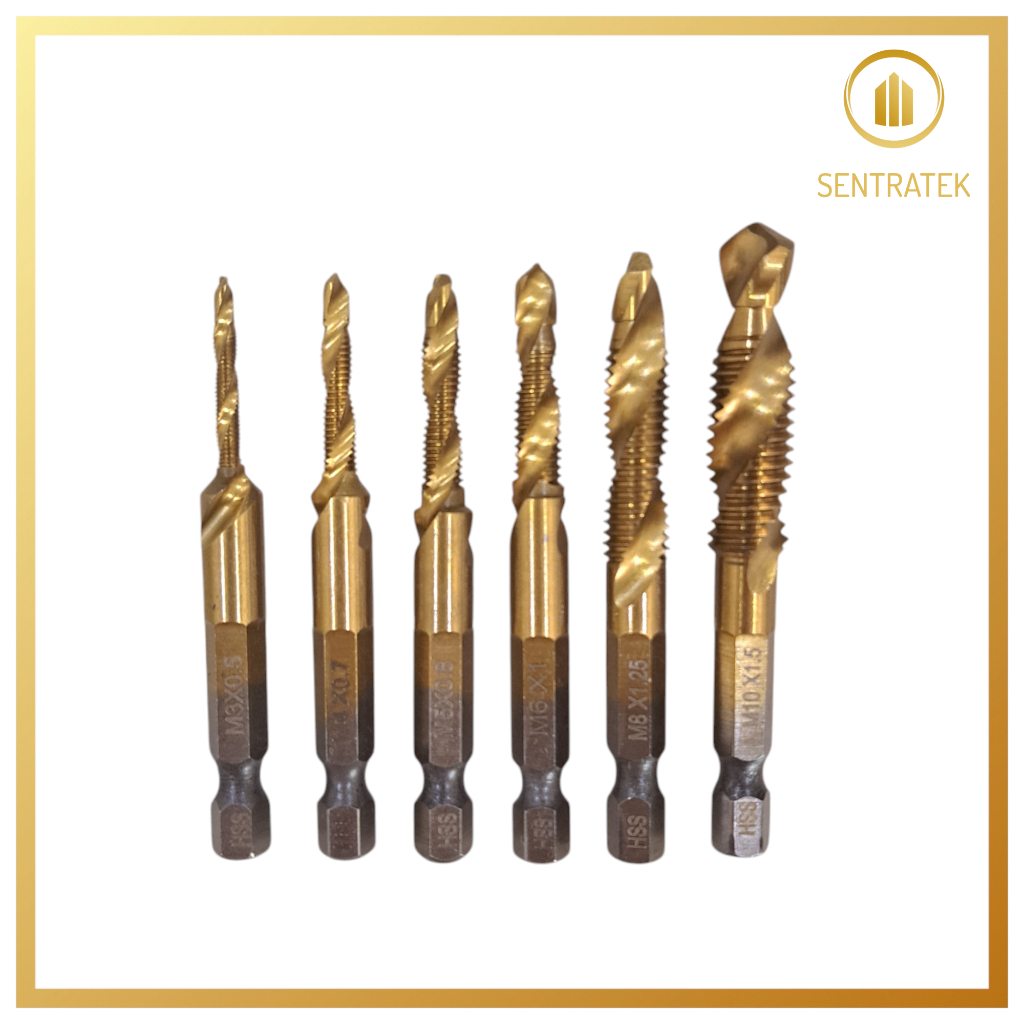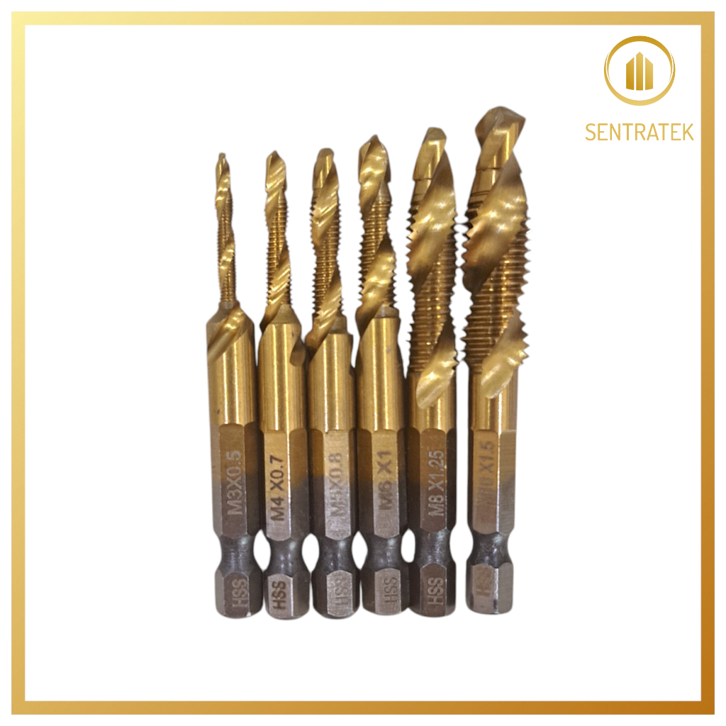 (SET 6 PCS) MATA BOR PEMBUAT ULIR DRAT DRILL TAP SET HEX TWIST SPIRAL BIT DRILLING TAPPING DEBURRING