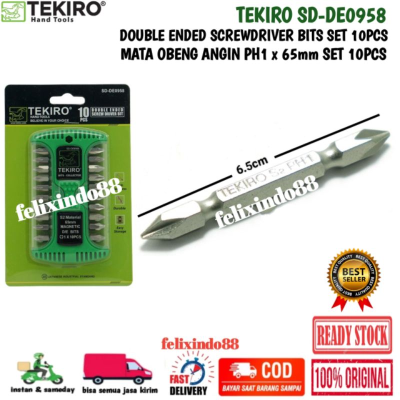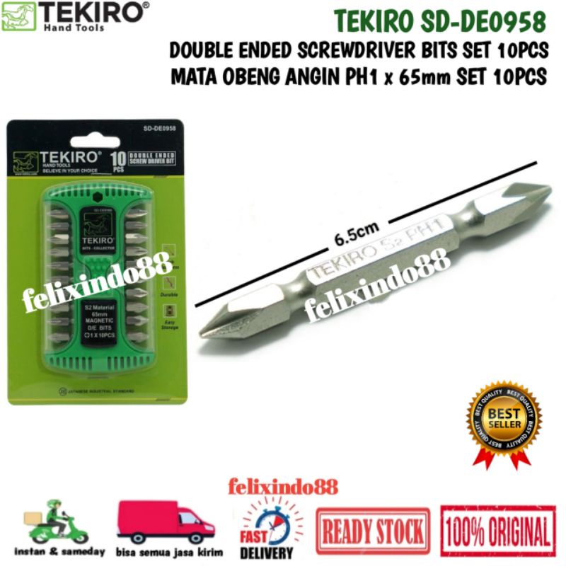 Tekiro Mata Obeng Angin Kembang Plus + SD-DE0958 Original Double Ended Ph1 x 65mm 1 Set Bor Kembang