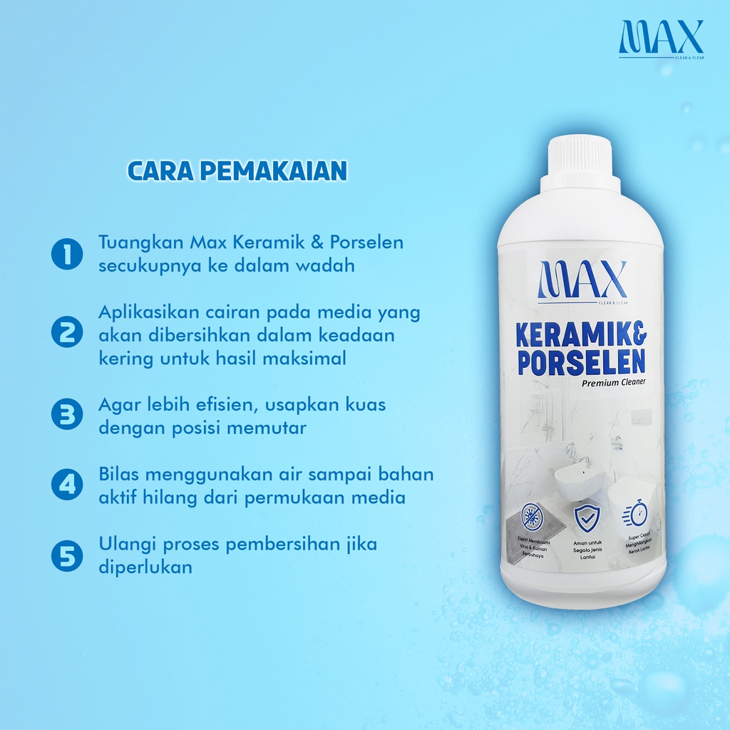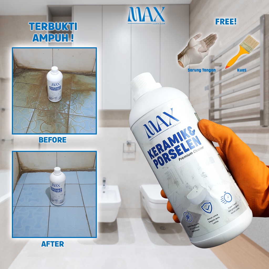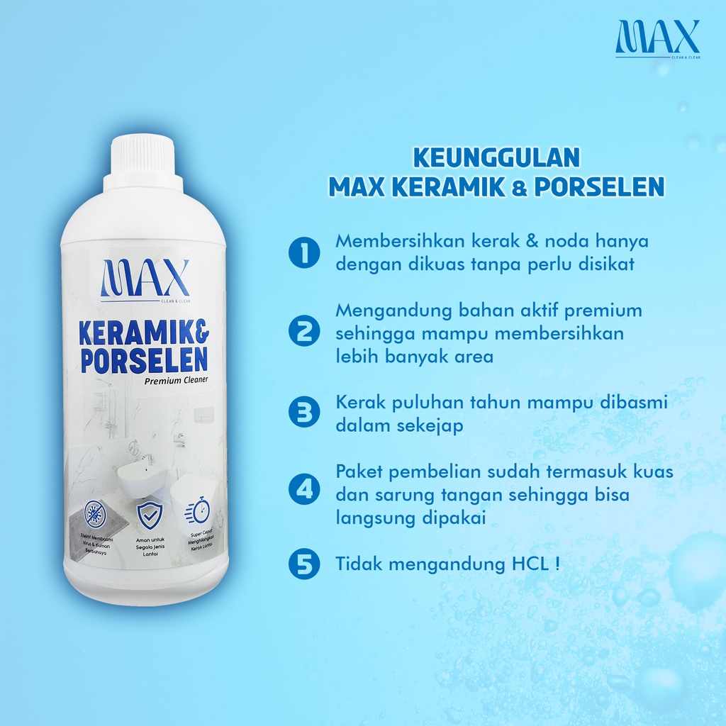 MAX CLEAN CAIRAN PEMBERSIH KERAMIK PORSELEN KLOSET KERAK LANTAI TOILET KACA PINTU PLASTIK PVC WASTAFEL WC TERBUKTI AMPUH