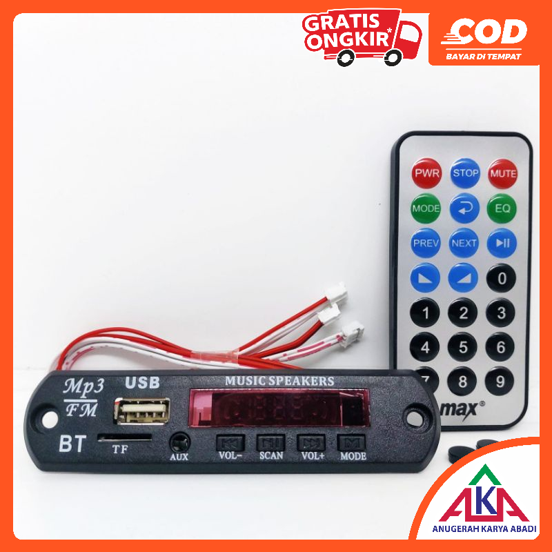 MAX Kit Modul MP3 Bluetooth USB AUX Radio FM Remote 12V - VTF 1088BT