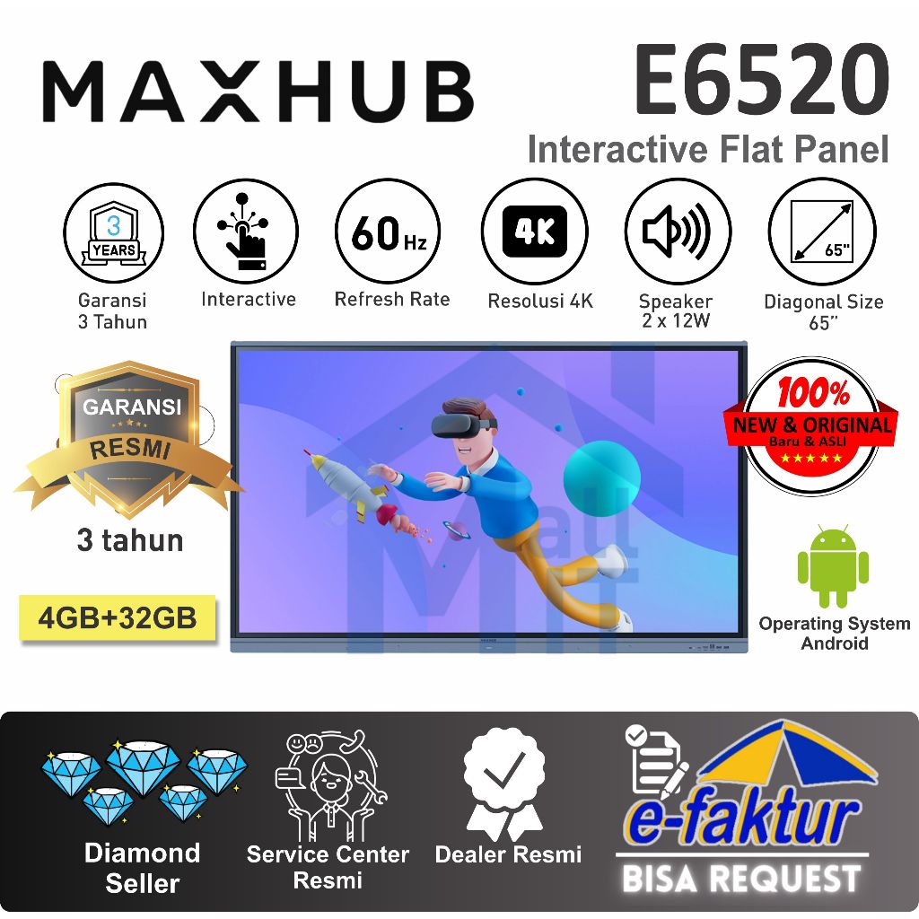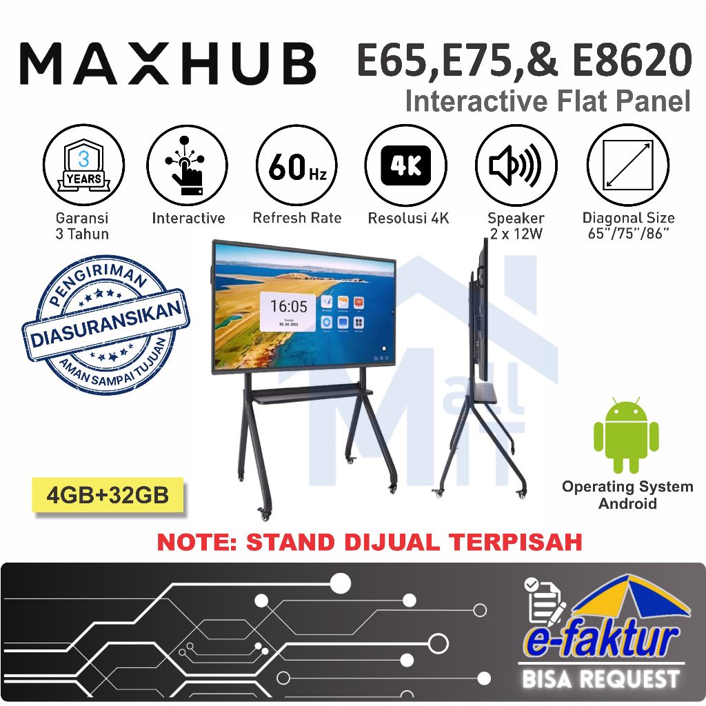 MALLIT MAXHUB Interactive Flat Panel IFP E6520 E7520 E8620 Interaktif Panel 65 75 86 Android 4K