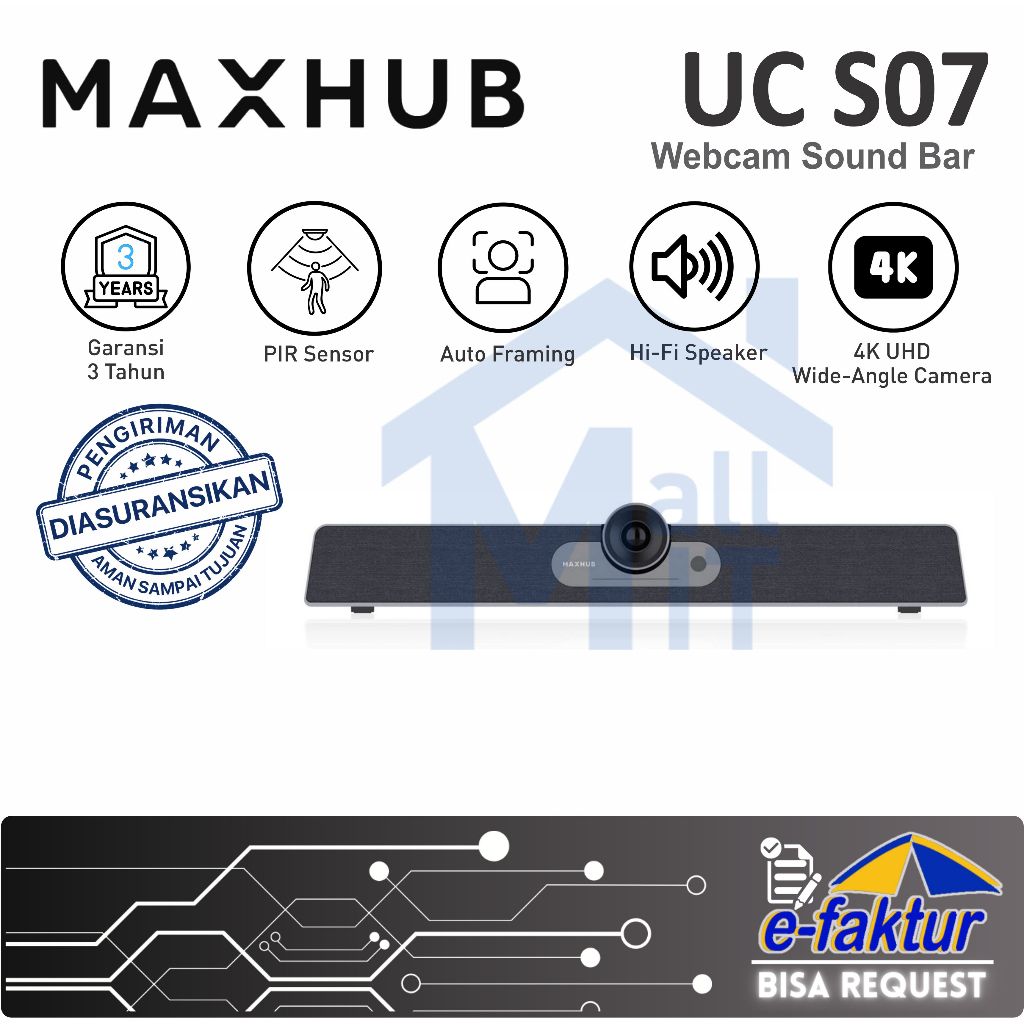 MALLIT MAXHUB UC S07 Webcam Sound Bar 12MP HD Camera bluit in Hi-Fi Zoom Meet
