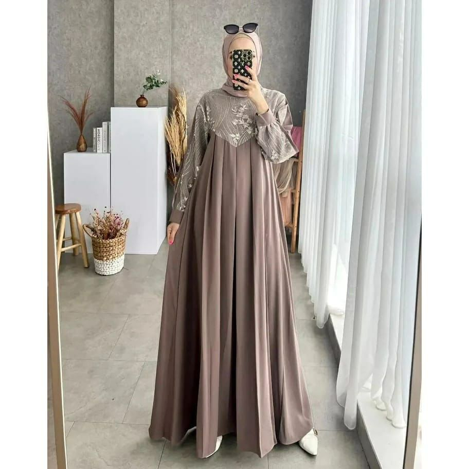 MAXI DRESS LESTY KEJORA GAMIS BRUKAT KOMBI MOSCRAPE M L XL XXL COD/GAMIS BRUKAT PREMIUM LADY PESTA/DRESS/BAJU WANITA TERBARU