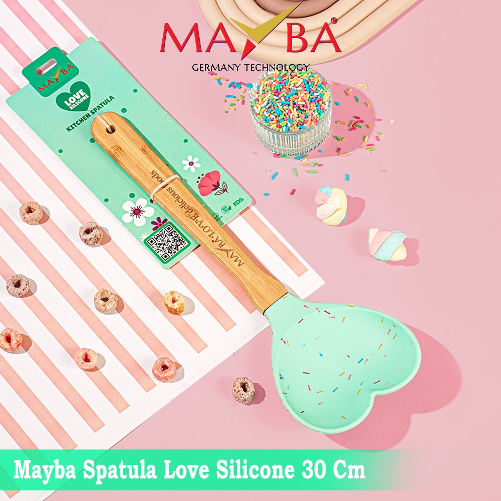 MAYBA SPATULA LOVE Silikon Tebal anti leleh - Sutil Tuner Silicone Bpa Free Paling Bagus Tuk Panci Set Mpasi Baby Bayi