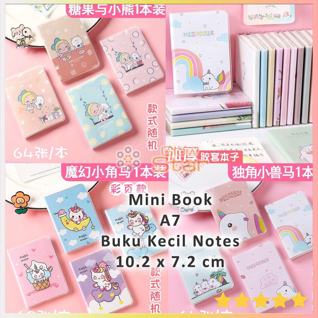 MBA7 Mini Book, Buku kecil anak anak motif lucu A7 tulis gambar catatan notes agenda mini Notepad notebook model pink cewek TK SD