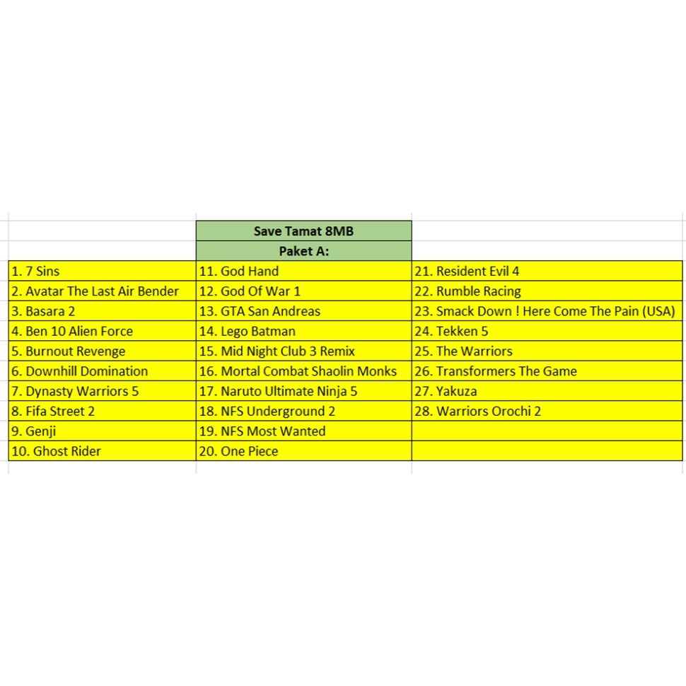 MC Memory Card PS2 Save Tamat 8 MB Paket A