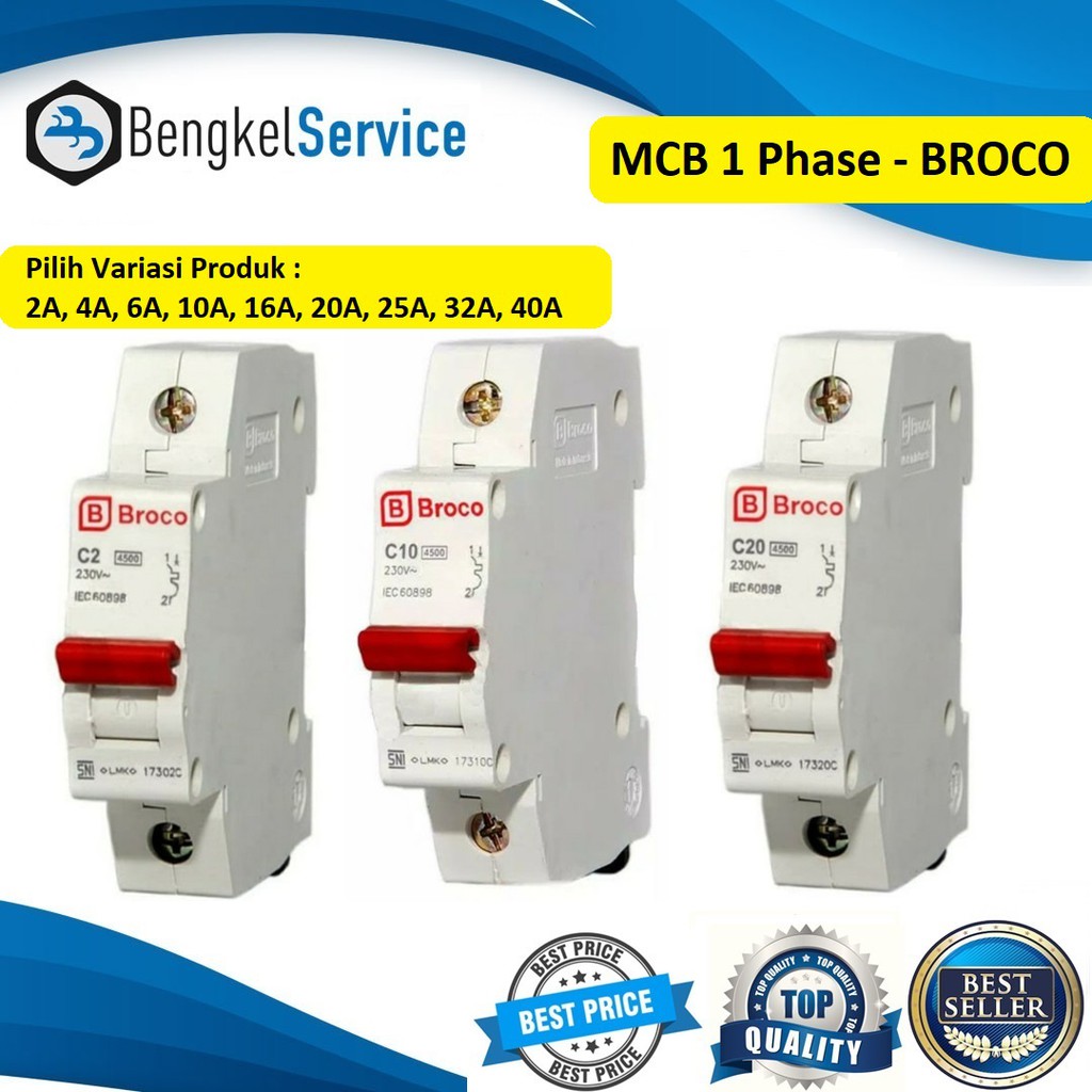 MCB 1 PHASE BROCO 2A, 4A, 6A, 10A, 16A, 20A, 25A, 32A, 40A