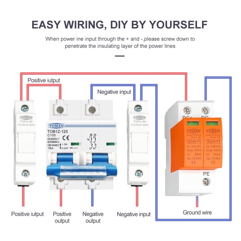 MCB DC 2P 100A 125A DC 600 V MCB Circuit Breaker untuk Sistem PV C Kurva MCB
