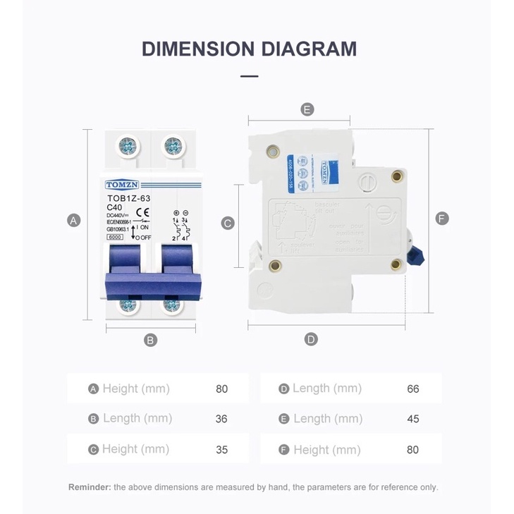 MCB DC 440V 2P Circuit Breaker 3A 6A 10A 16A 20A 25A 32A 40A 50A 63A