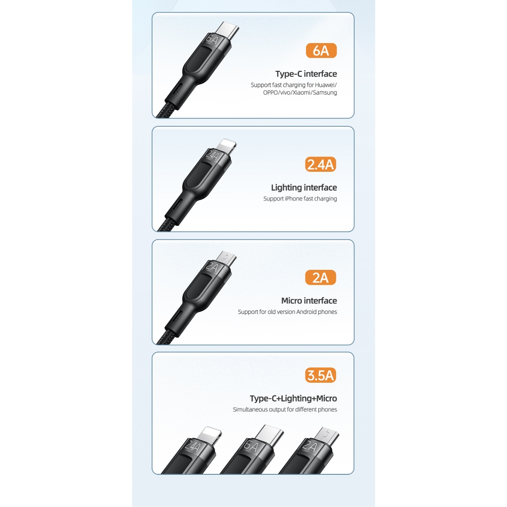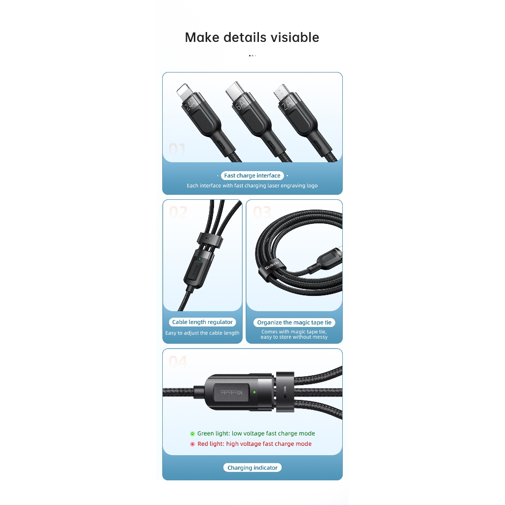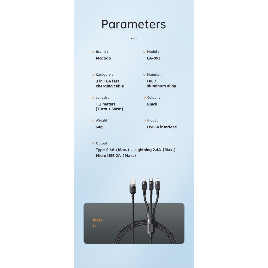 MCDODO Kabel Data 3in 1 Micro USB, Lightning, USB Type C Fast Charging 66W Max CA-0930