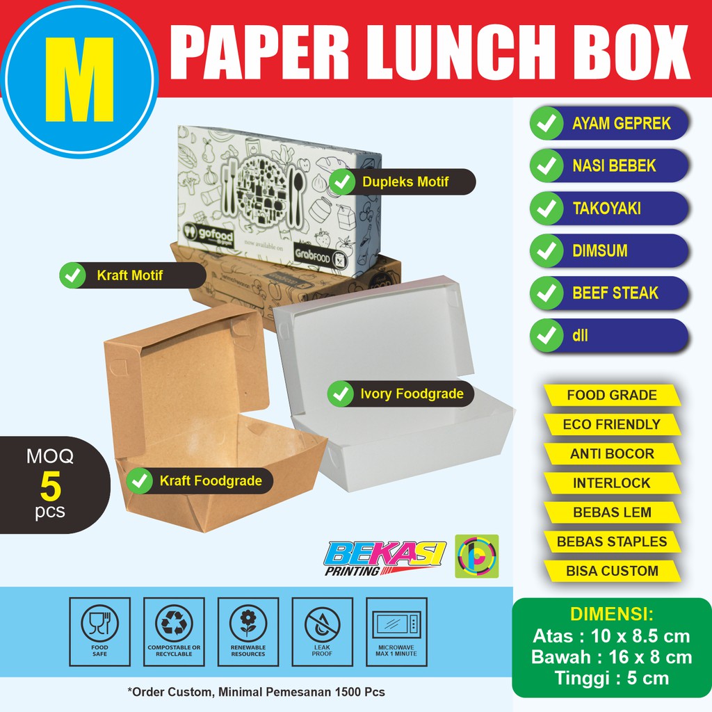 Paper Lunch Box Foodgrade Kotak Nasi Kertas / Dus Makanan / Take Away Size MEDIUM 18x10,5x5 cm
