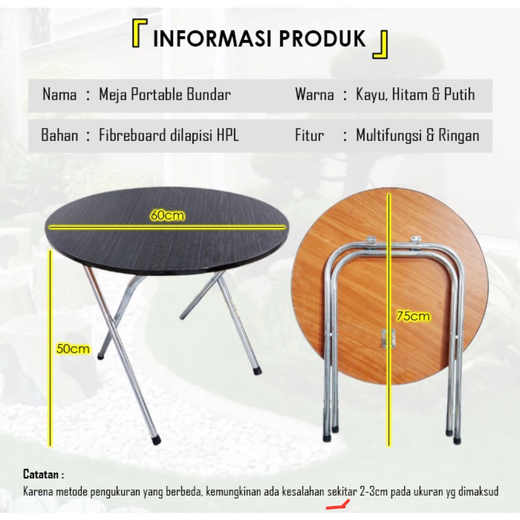 MEJA LIPAT BULAT MEJA BULAT MULTIFUNGSI MEJA OUTDOOR FBL