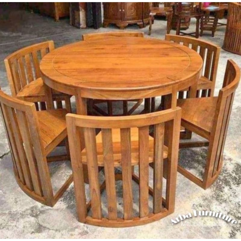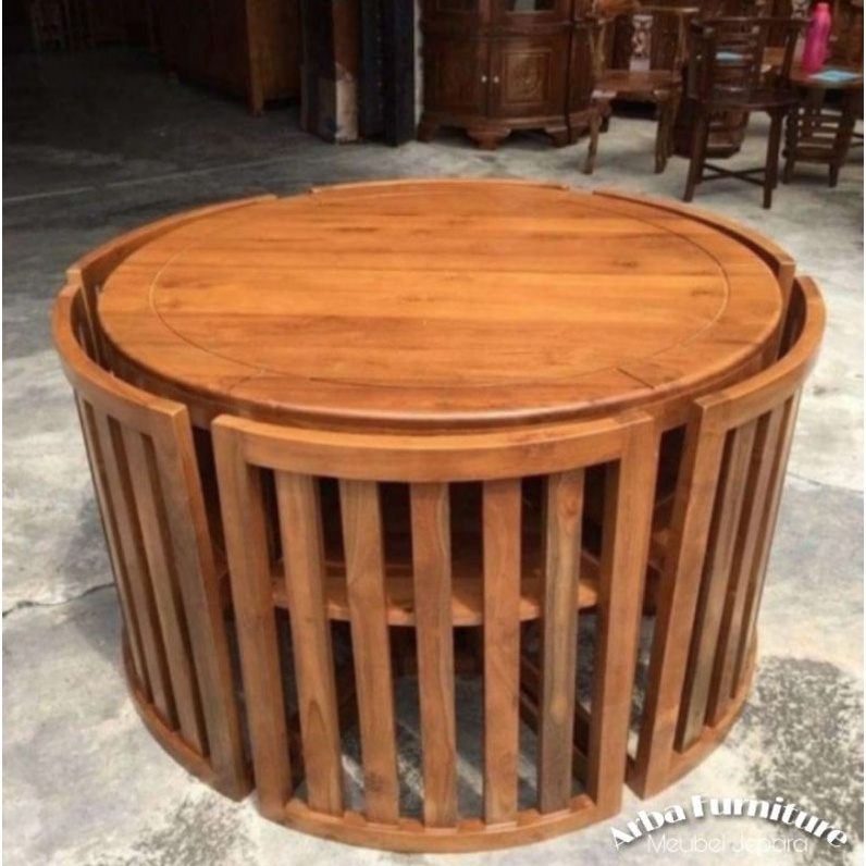 MEJA MAKAN BULAT MODERN / MEJA MAKAN RESTORAN MINIMALIS KAYU JATI