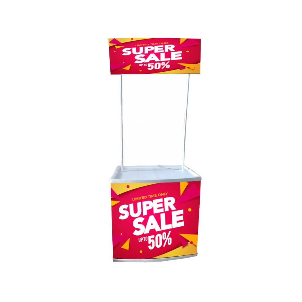 MEJA PROMOSI / EVENT DESK SEGI + CETAK PRINT STICKER / FLEXI