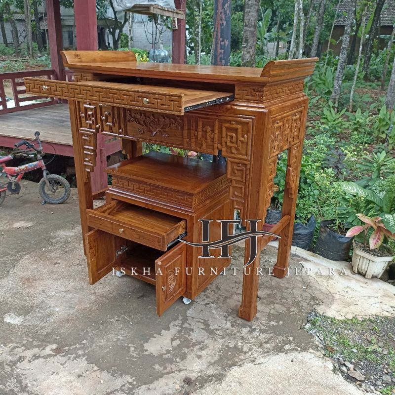 MEJA SEMBAYANG CINA_MEJA ALTAR KAYU JATI_MEJA ABU LELUHUR DEWA