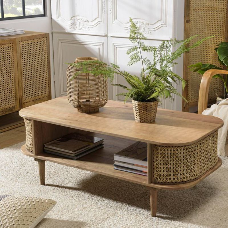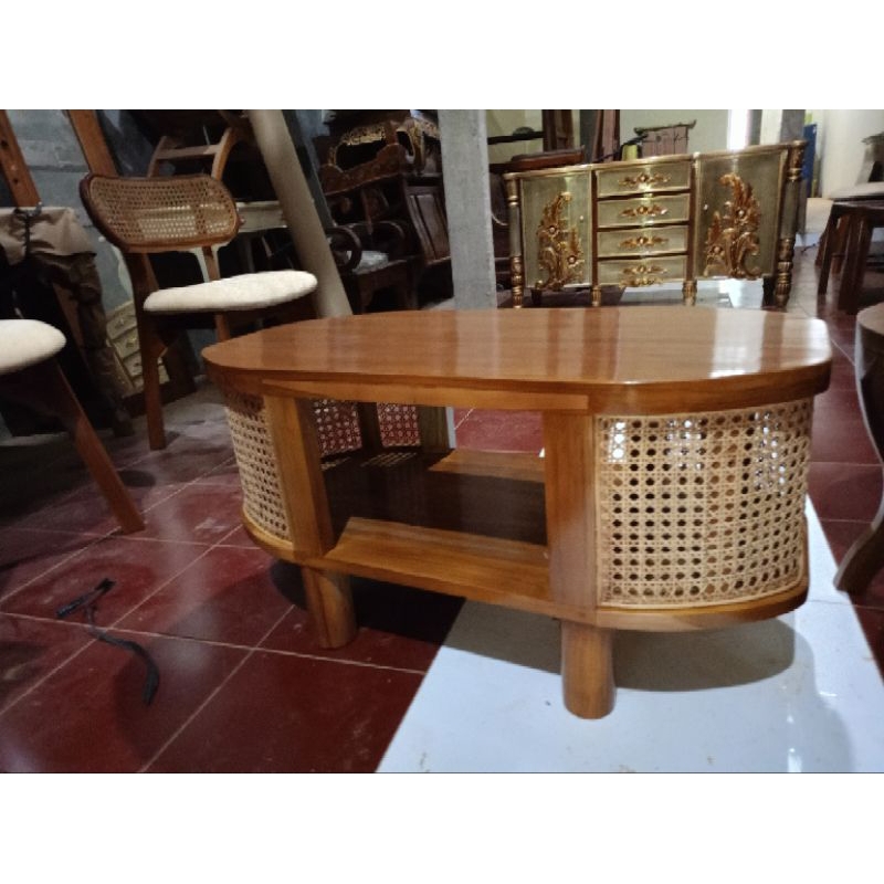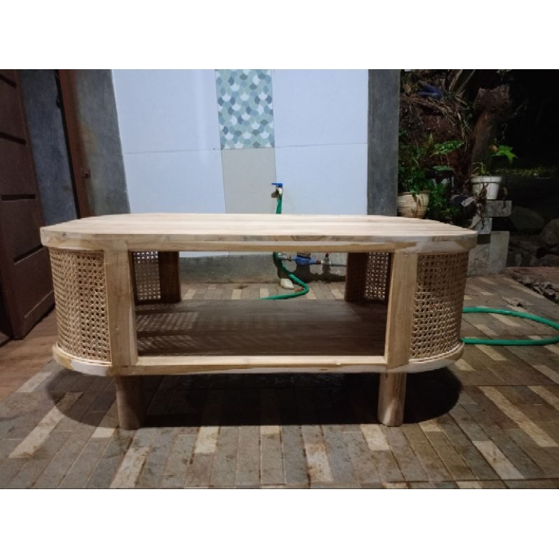 MEJA TAMU KAYU JATI MIX ROTAN | MEJA SOFA KAYU JATI MINIMALIS | MEJA