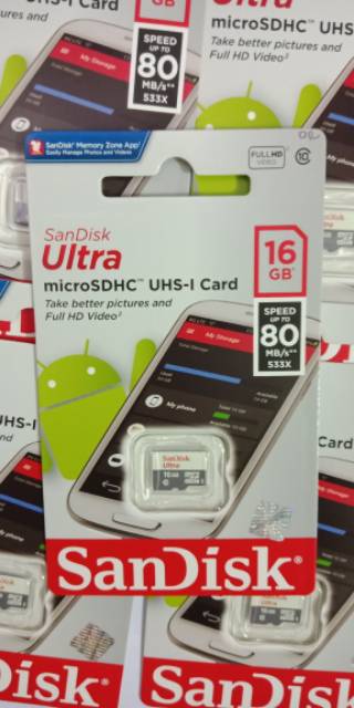 MEMORY CARD SANDISK ULTRA 16GB 80mb/microSD CLASS 10 KARTU MOMORY