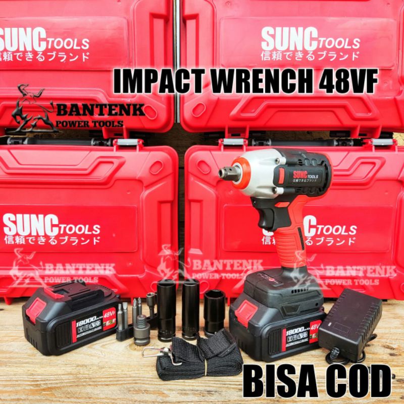 MESIN BOR BATERAI 48V IMPACT WRENCH MERAH (FULL) SUNC TOOL. BOR BUKA PASANG BAUT, BOR SHOCK. BOR MULTIFUNGSI