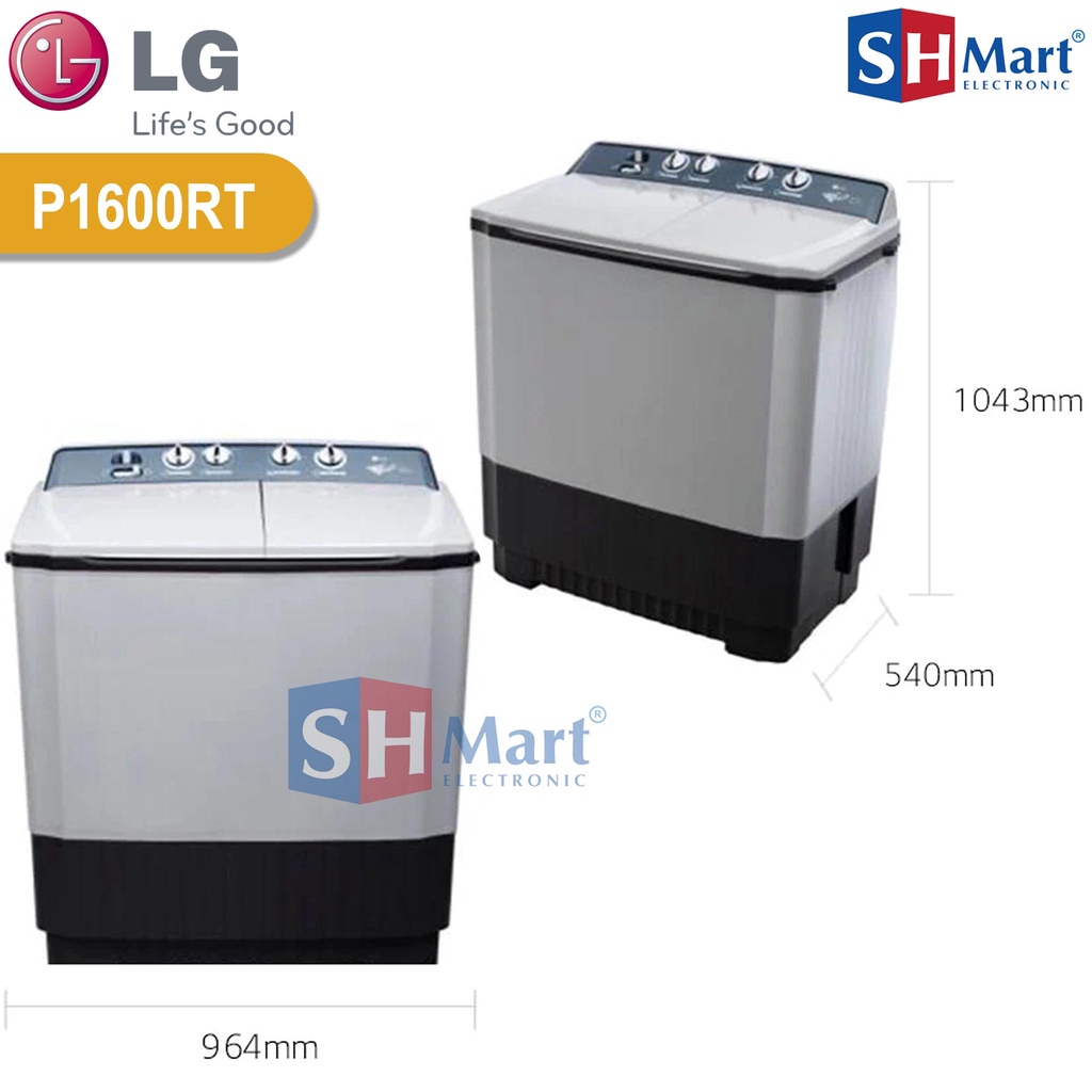 MESIN CUCI LG 2 TABUNG 16 KG P1600RTB / P1600RT GARANSI RESMI (MEDAN)