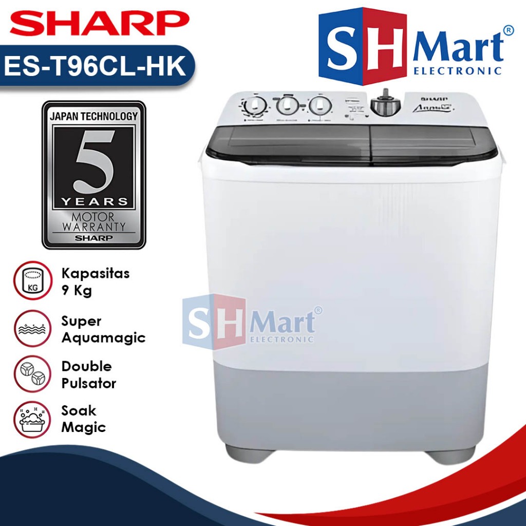 MESIN CUCI SHARP 2 TABUNG 9 KG AQUAMAGIC ES-T96CL / ES-T95CR GARANSI RESMI