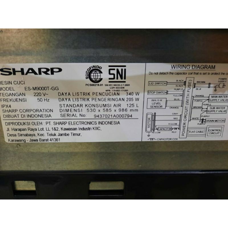 MESIN CUCI SHARP ESM 8000 8 KG 1 TABUNG ESM8000 TOP LOADING