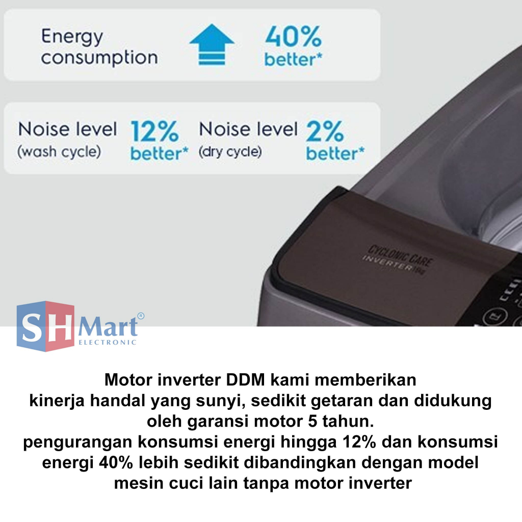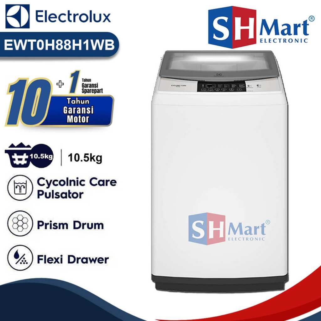 MESIN CUCI TOP LOADING ELECTROLUX KAPASITAS 10,5 KG EWT0H88H1WB GARANSI RESMI (MEDAN)