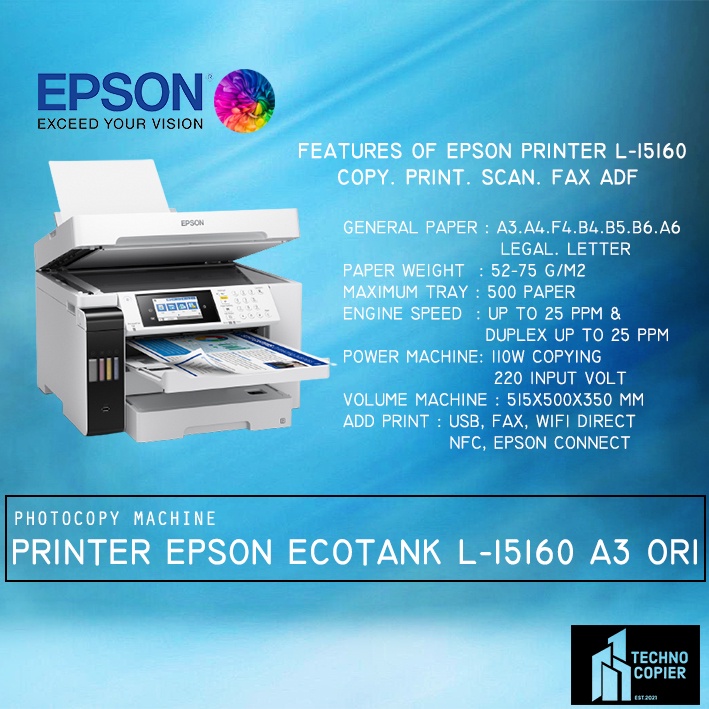 MESIN FOTOCOPY PRINTER WARNA EPSON L15160 A3 COPY SCAN FAX KERTAS ALL IN ONE