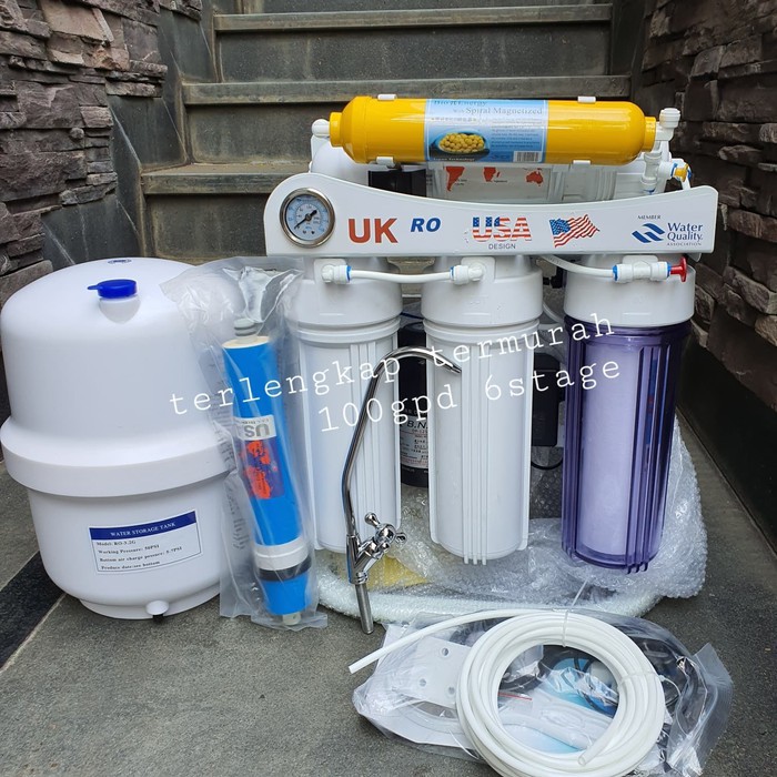 MESIN R0 REVERSE OSMOSIS UK-100 GPD 6 STAGE + preesure gauge RO 100GPD UK USA