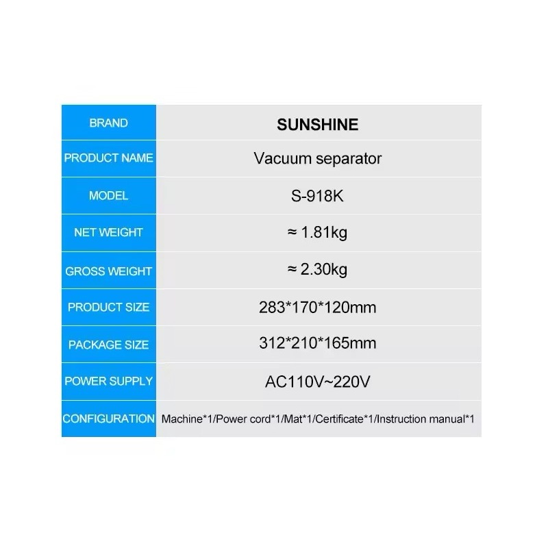 MESIN SEPARATOR PEMISAH LCD TOUCHSCREEN SUNSHINE S-918K ORIGINAL