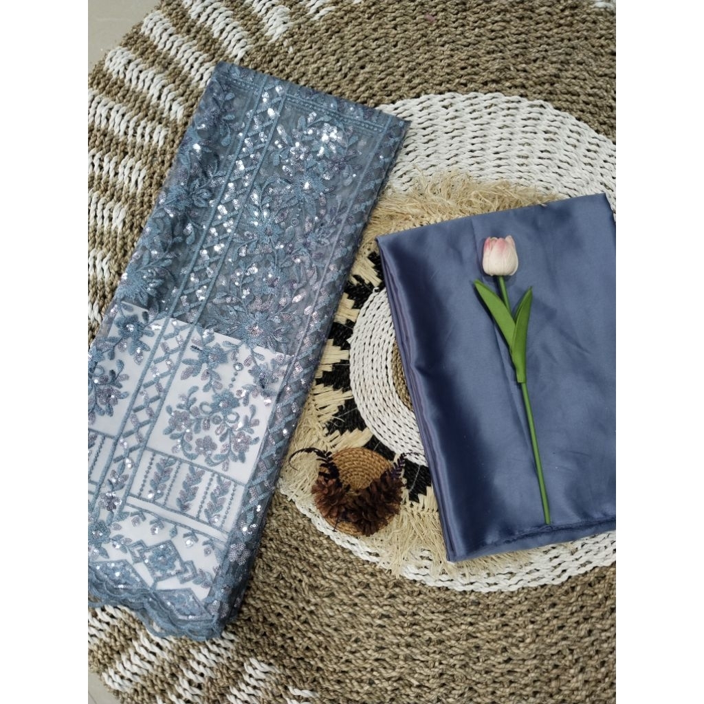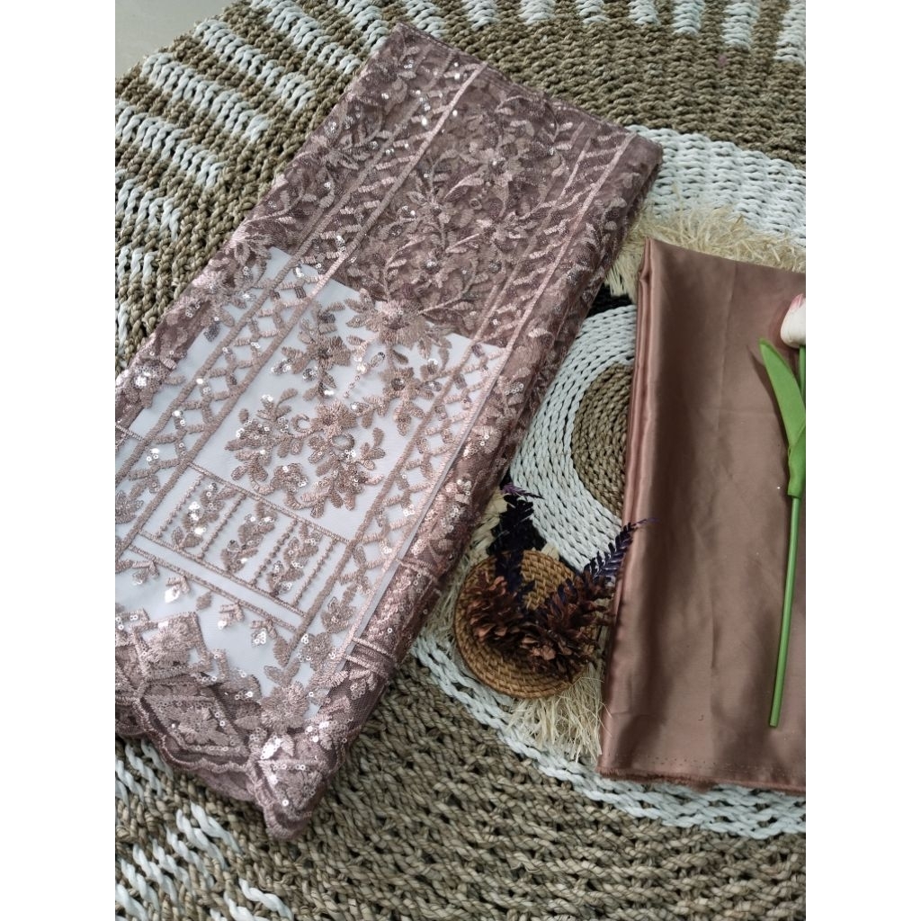 MEWAH !!BAHAN KAIN TILE PAYET SPIDERS MOTIF LIMITID/kain brokat PAYET,bahan ,gaun,baju.