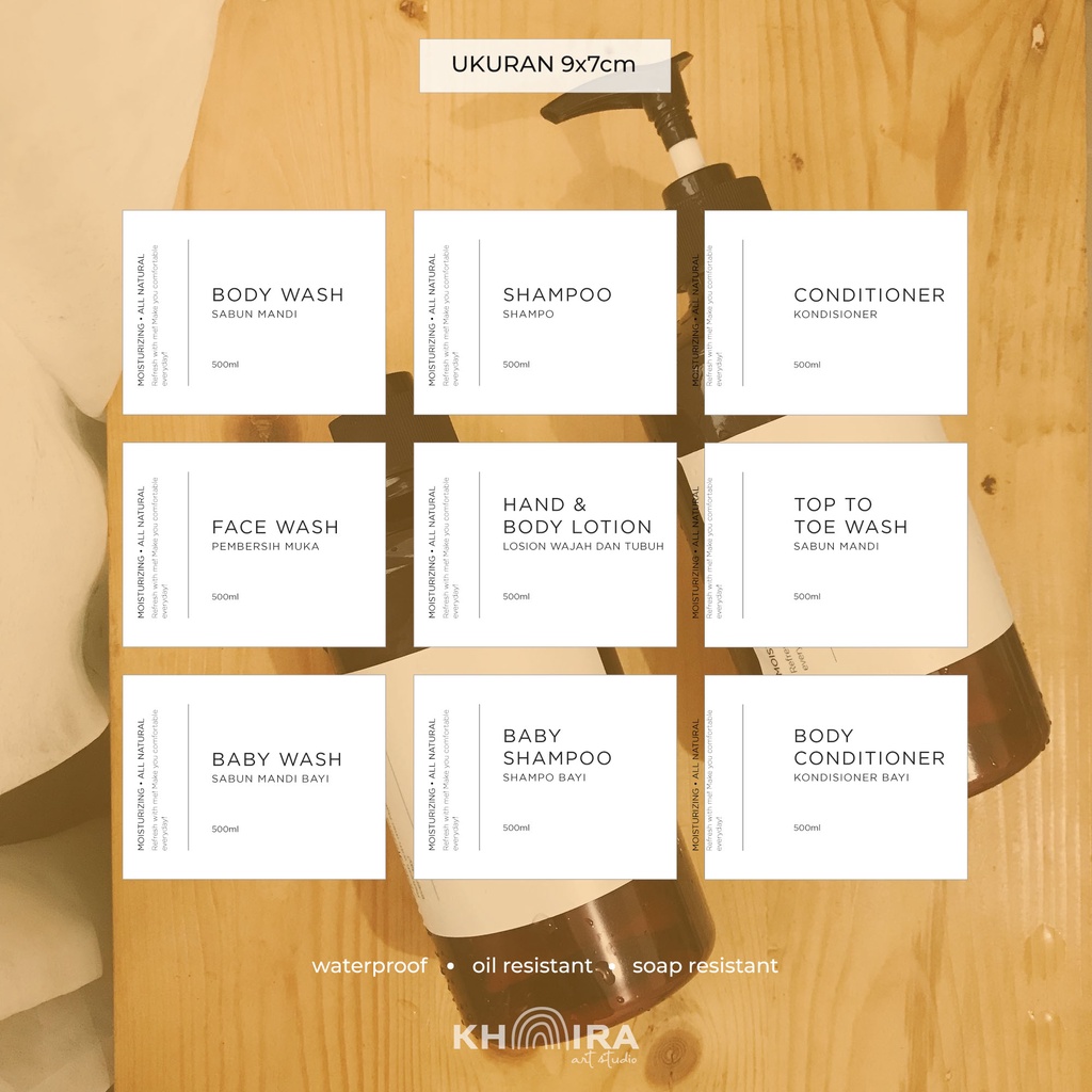 MEZCA - Label Sticker Botol Sabun Mandi Shampo / Label Sticker Bottle Pump Waterproof / Label Sticker Bottle Spray