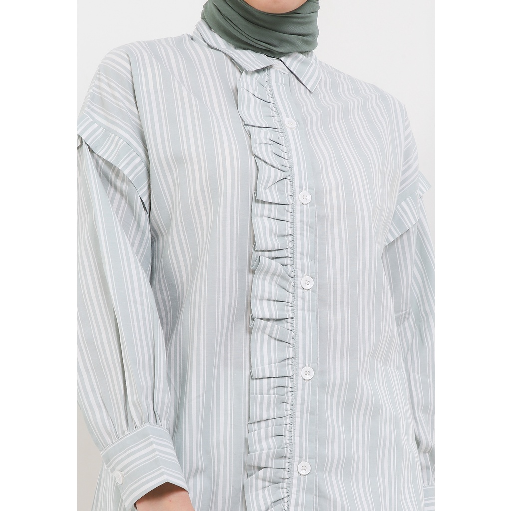 MFMW Anipha Atasan Kemeja Hijau Motif Salur