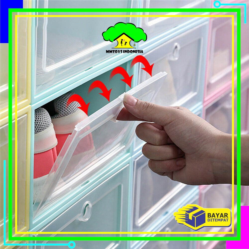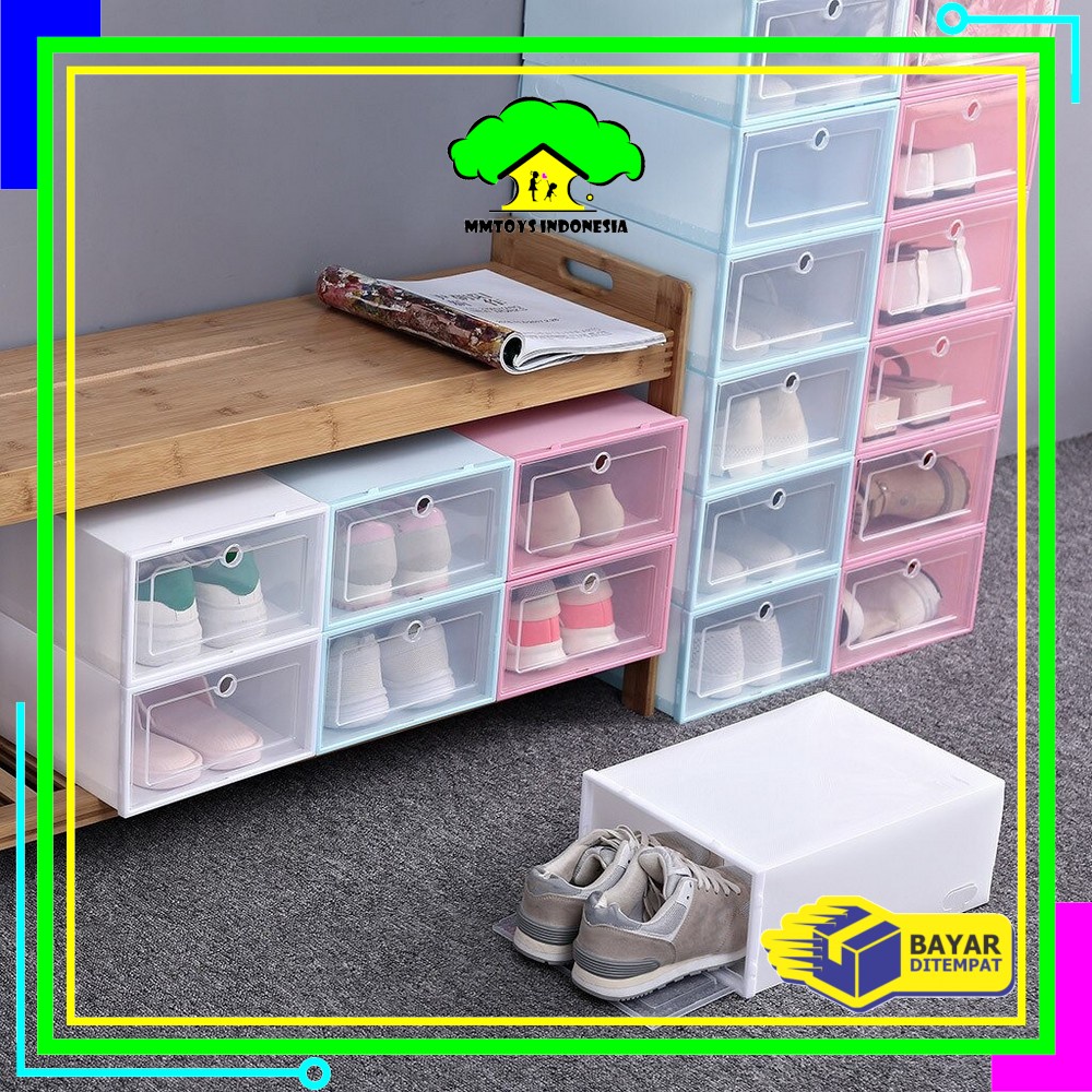 MI-C158 Kotak Sepatu Lipat Transparan Tebal Shoes Storage Box Organizer Rak Sepatu Plastik Susun