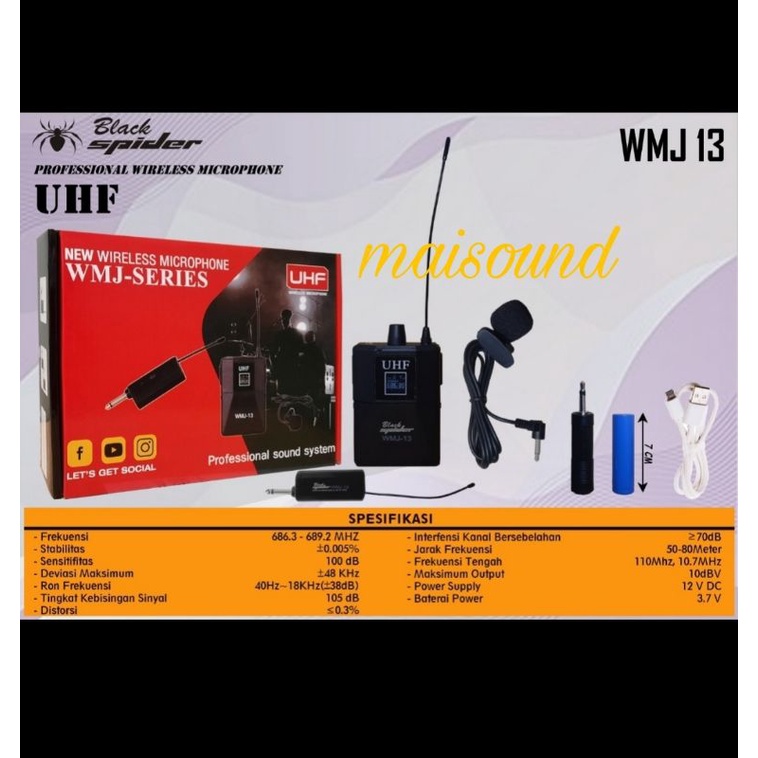 MIC WIRELESS BLACK SPIDER WMJ13 CLIP ON MICROPHONE BLACKSPIDER WMJ 13