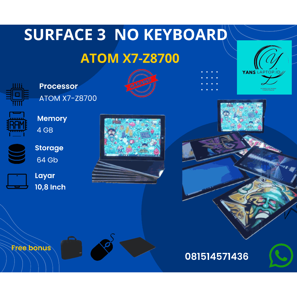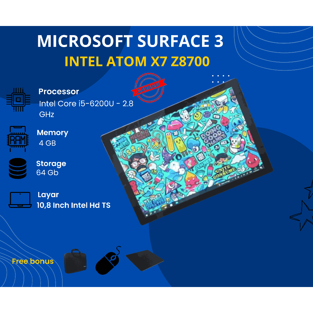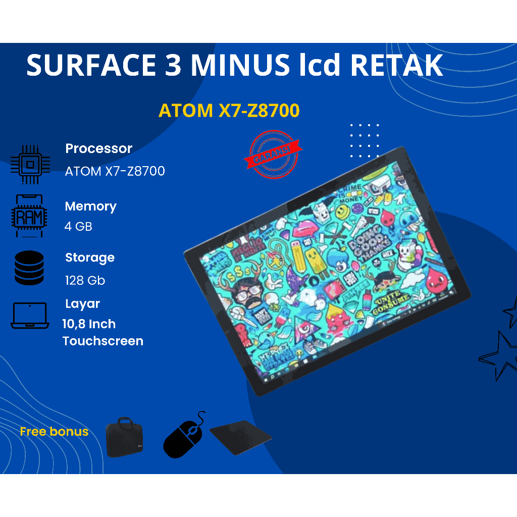 MICROSOFT SURFACE 3 INTEL ATOM X7 RAM 4/64 GB + memory SD CARD 64GB