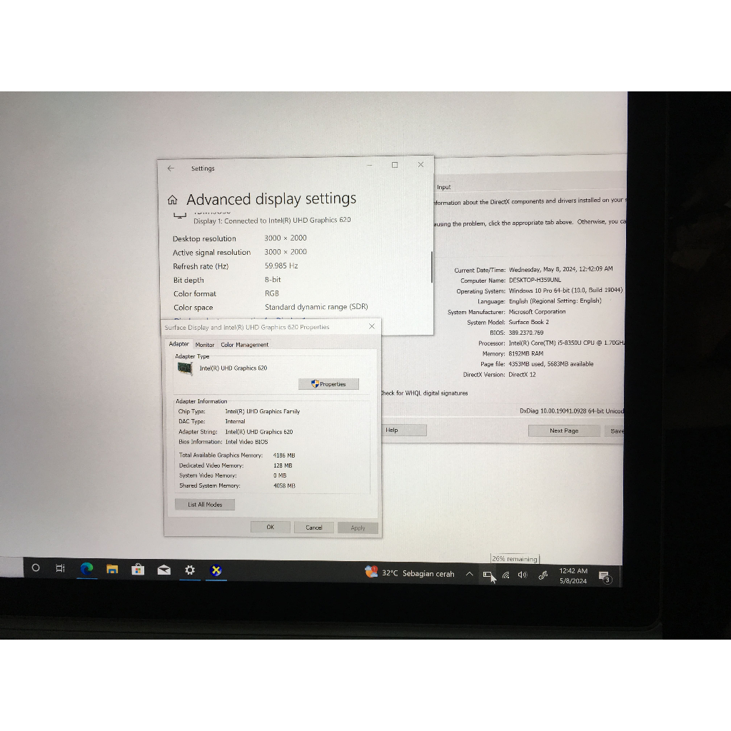 MICROSOFT SURFACE BOOK 2 I5 8350U 8GB RAM 256GB SSD 3000X2000 CAM