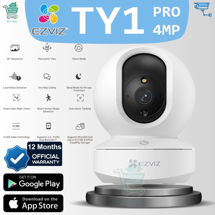MICTON EZVIZ TY1 PRO 4MP 2K+ Resolution CCTV WiFi IP Camera Pan and Tilt Smart Kamera CCTV Nirkabel Wireless Indoor Full Color