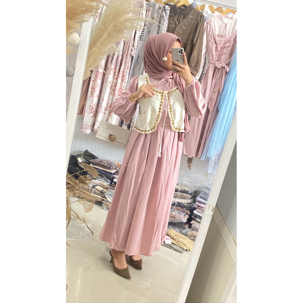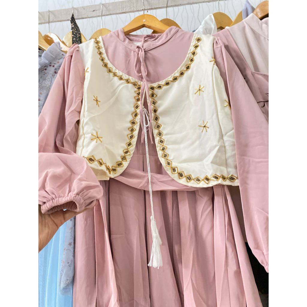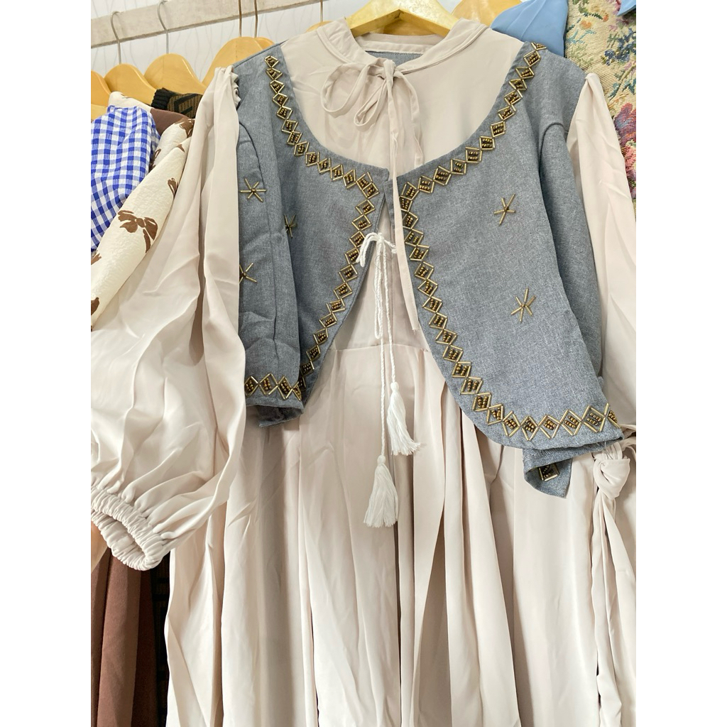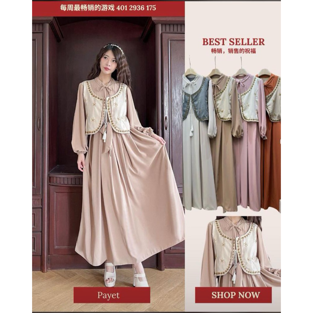 KOREAN DRESS MANIK CANTIK LEBARAN | TUNIK VINTAGE LEBARAN | MIDI DRESS PUTIH POLOS