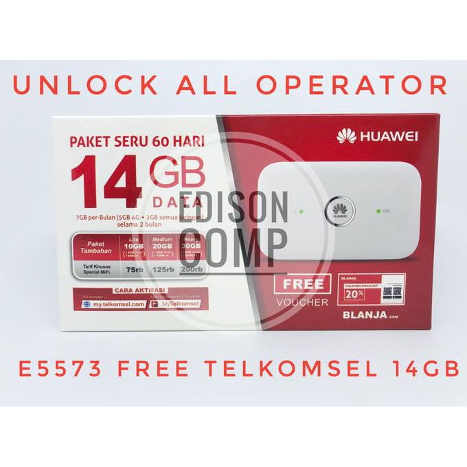 MIFI ROUTER MODEM WIFI 4G HUAWEI E5573 TELKOMSEL UNLOCK FREE 14GB - PUTIH