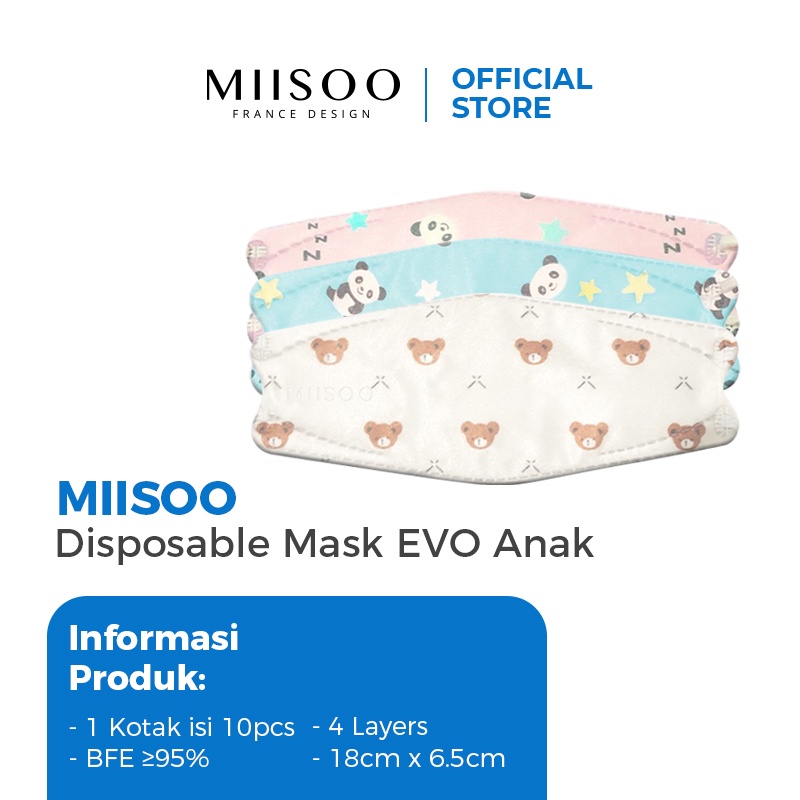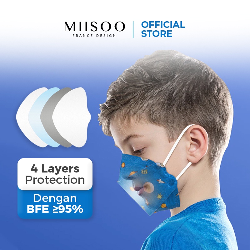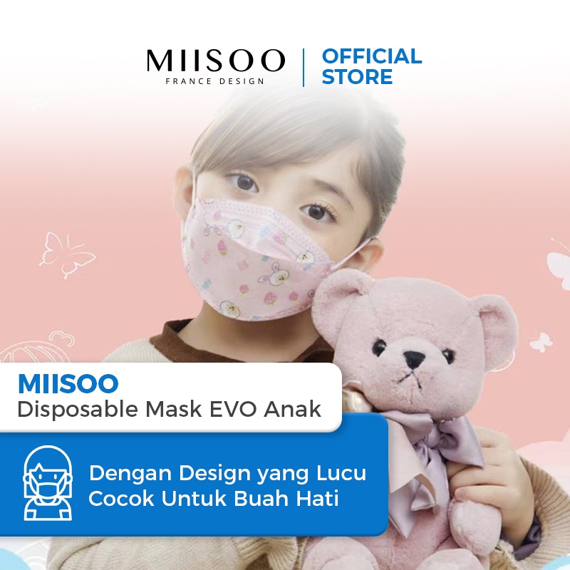MIISOO Disposable Mask EVO Anak Motif N95 KN95 BFE 95% Masker Kesehatan wajah Kids 4ply IZIN BNPB