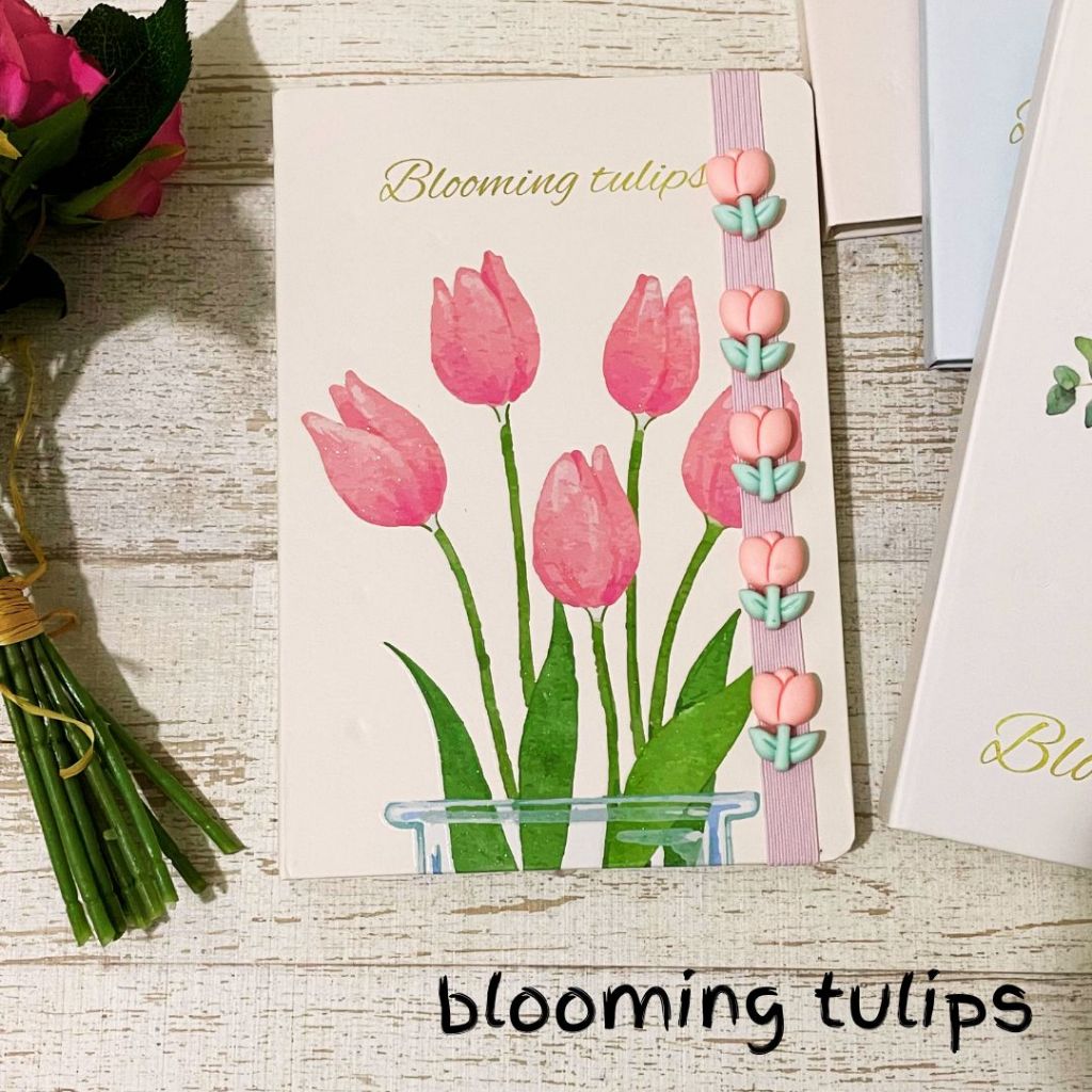 MIKIREI Sunflower Tulip Hardcover Diary Buku Note Book Planner A5 Ruled Diary Muslimah