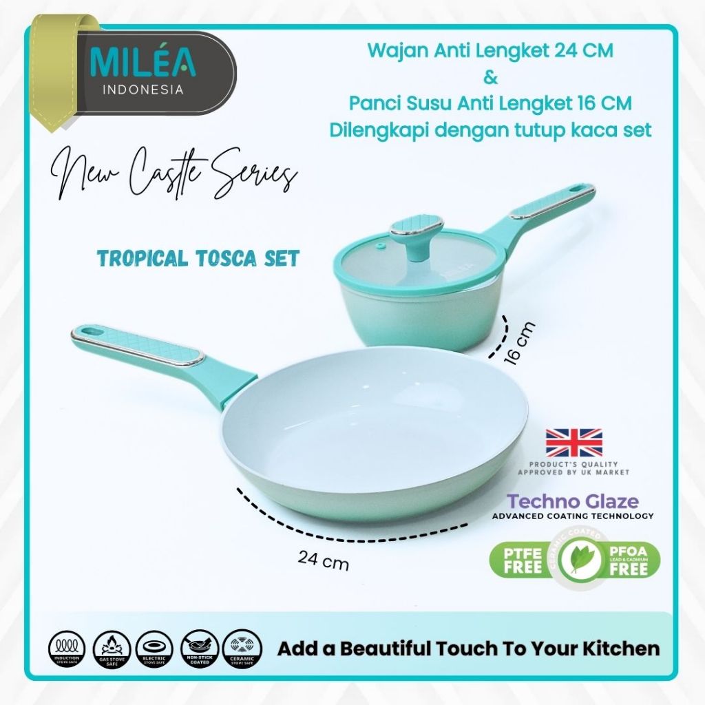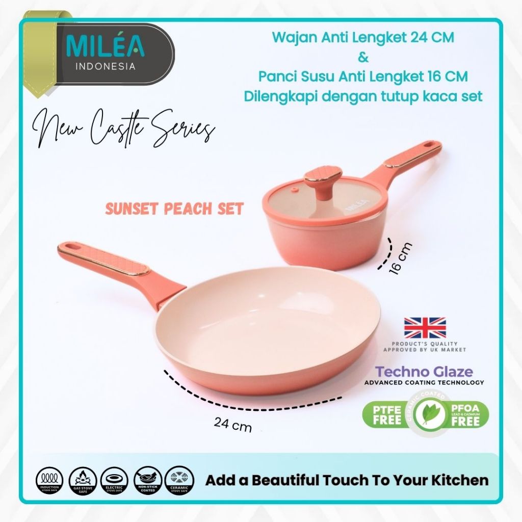 MILEA Bundling Set Fry Pan 24 cm & Sauce Pan 16 cm | Ceramic Coating Panci Anti Lengket Non Stick